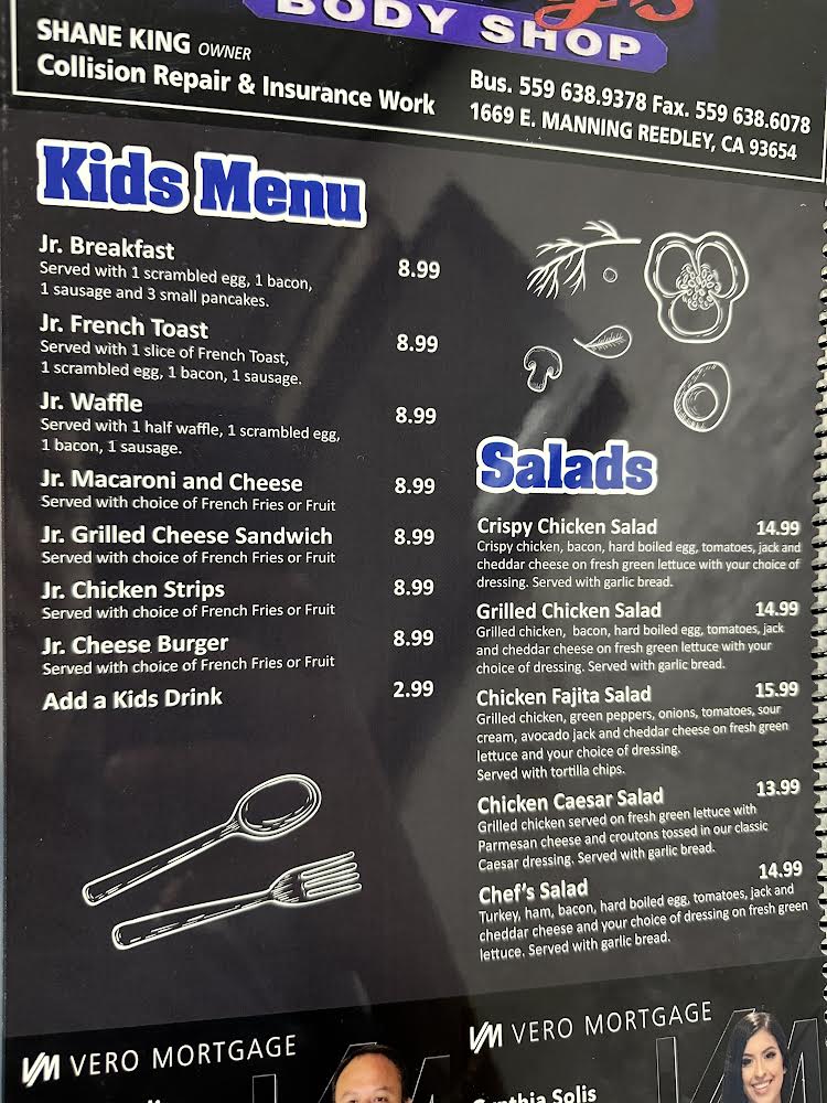 If you're looking for a cozy spot to enjoy a satisfying meal with family or friends, the M&J's Family Restaurant Menu has something for everyone. Located at 820 N Alta Ave in Dinuba, CA, this welcoming eatery serves up a variety of hearty dishes that are perfect for any appetite. From classic breakfast favorites like fluffy pancakes and eggs to comfort food like juicy burgers and home-cooked meats, M&J's offers a delicious spread that feels just like home. Whether you're in the mood for a quick bite or a leisurely meal, the diverse menu makes it easy to find something to love. With generous portions and friendly service, it’s the perfect place to unwind and enjoy a hearty meal with loved ones.